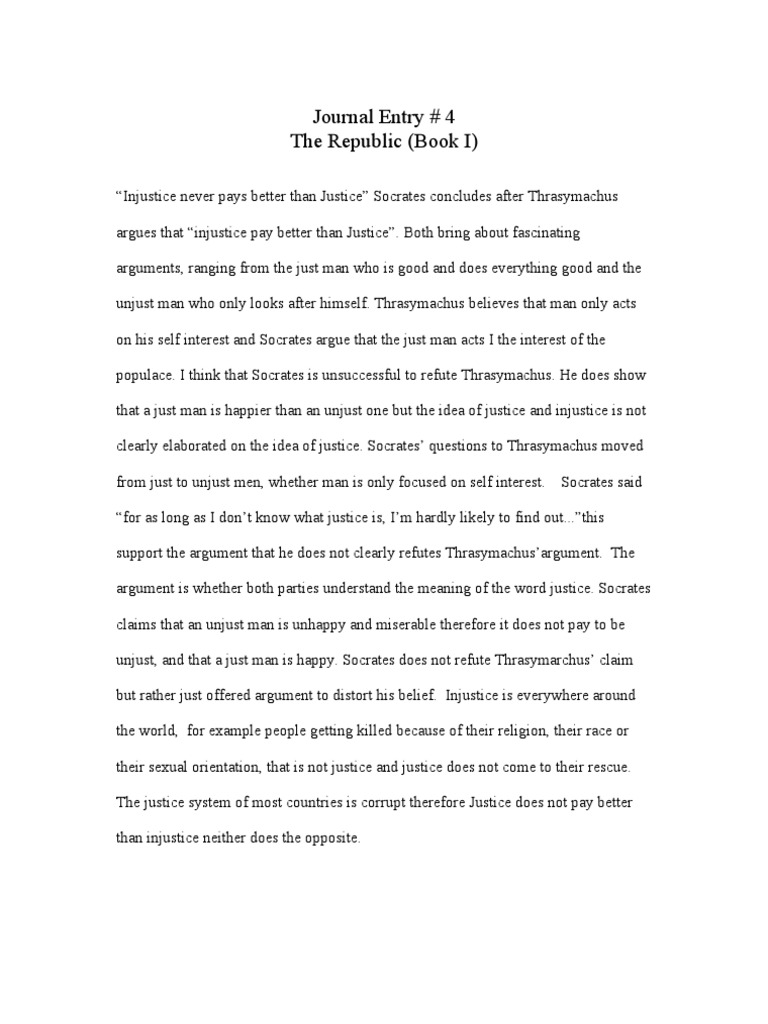 Yes he said what you are saying is very reasonable. The delineation of Socrates in the Republic is not wholly consistent. View Plato The Republic Book 1pdf from POLI 100 at University of British Columbia.